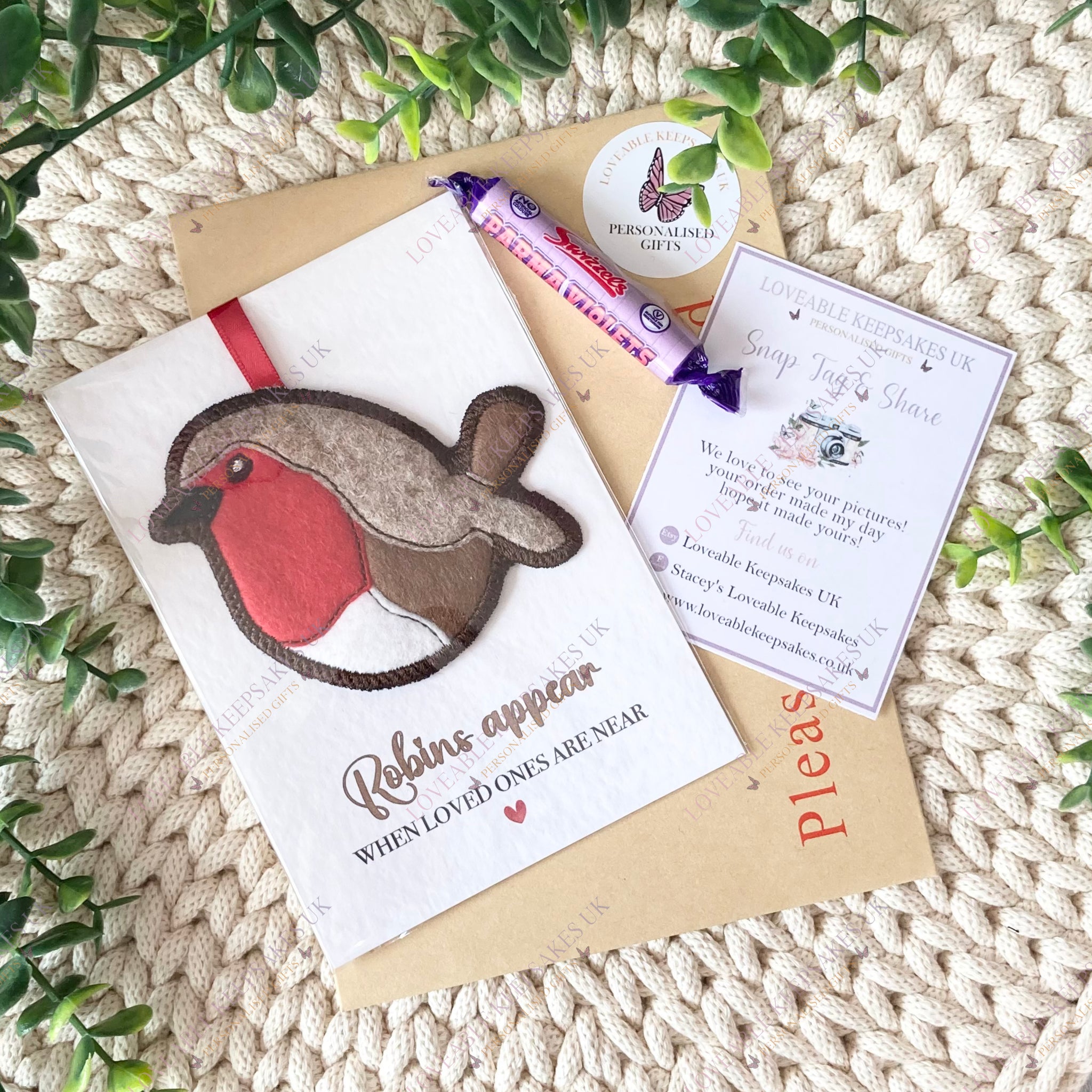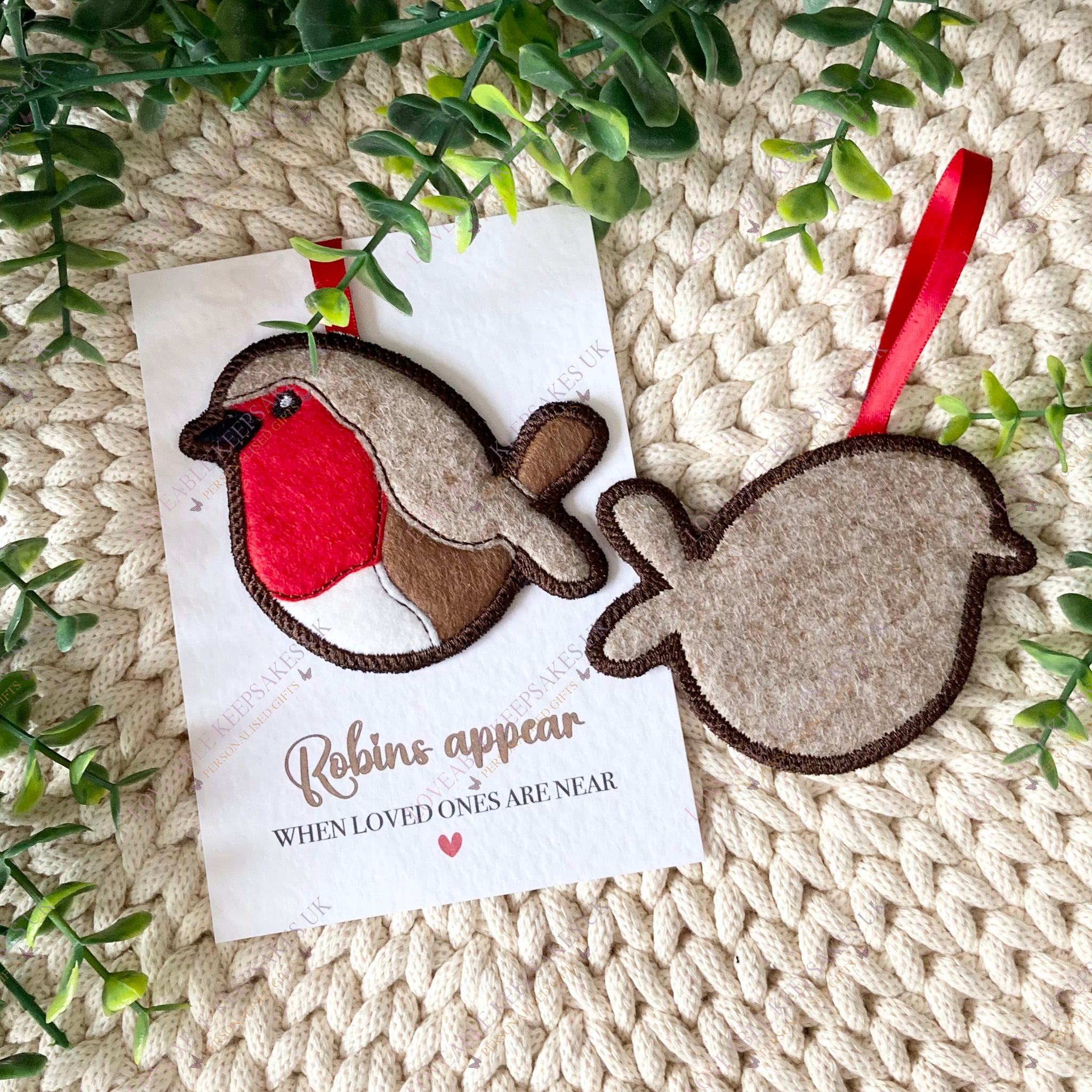 Christmas Robin Hanging Decoration & Remembrance Card – Handmade Memorial Keepsake Gift