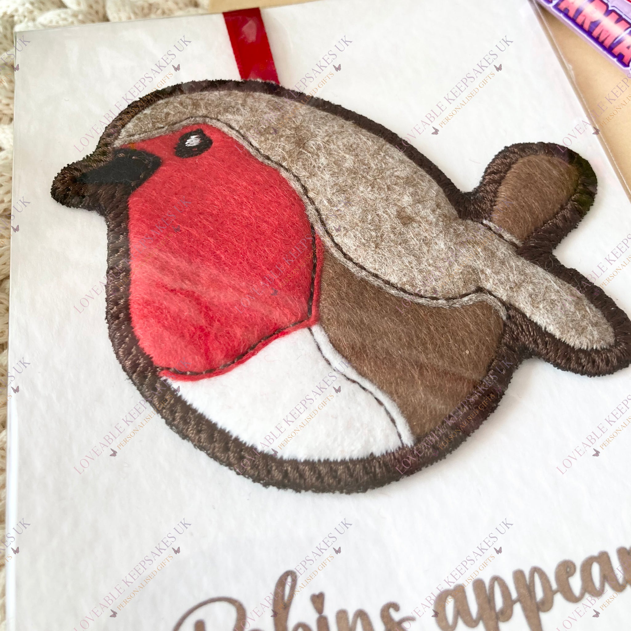 Each felt robin is carefully machine embroidered and finished with a smooth satin stitch edge, giving it a neat and high-quality appearance. It comes beautifully presented on a luxury off-white linen-textured card with the heartfelt words: